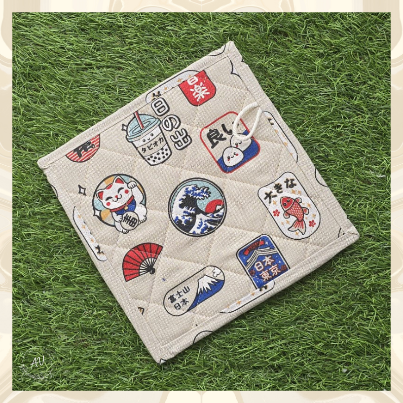 Confectionnée à partir de tissu 100 % coton et doublée de molleton Thermolam, cette manique résiste efficacement à la chaleur tout en offrant une bonne prise en main. Idéale pour manipuler plats chauds, casseroles ou moules sortis du four, elle est aussi jolie qu’utile.